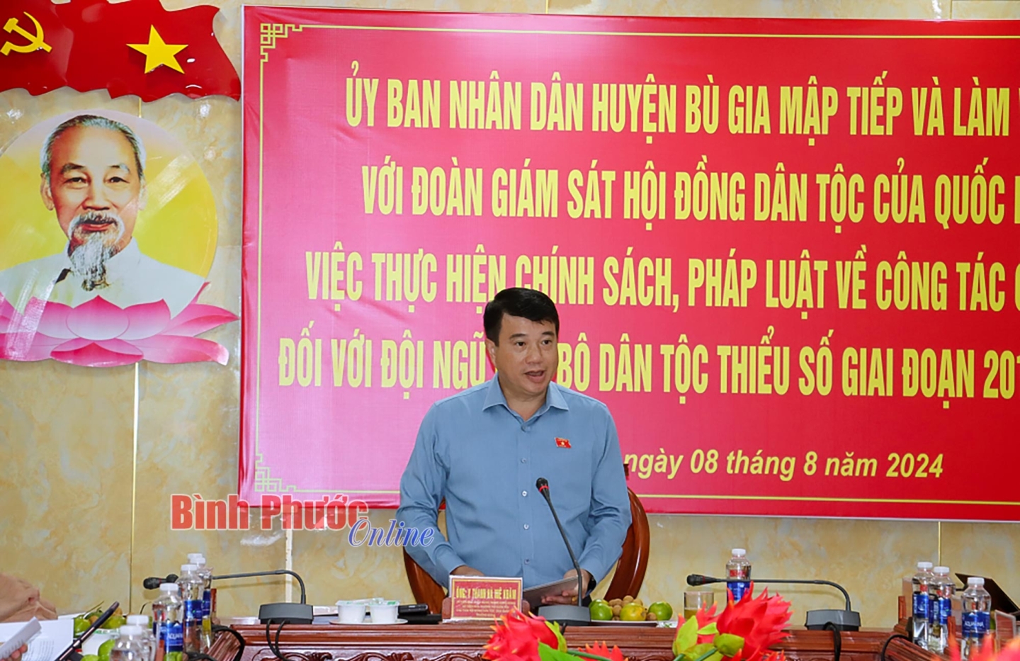 Tại buổi làm việc, lãnh đạo huyện Bù Gia Mập đề xuất Hội đồng Dân tộc của Quốc hội và tỉnh ban hành các văn bản cụ thể cơ chế đặc thù tuyển dụng, sử dụng cán bộ, công chức là người dân tộc thiểu số trong cơ quan, đơn vị.