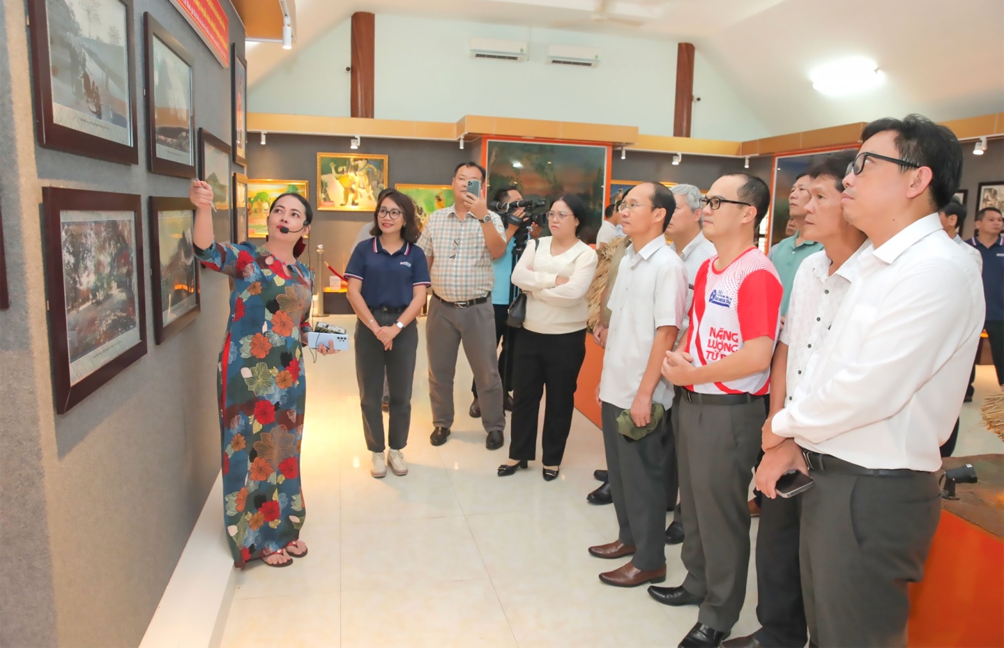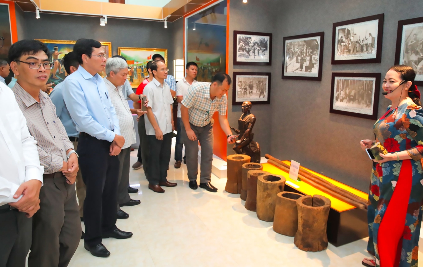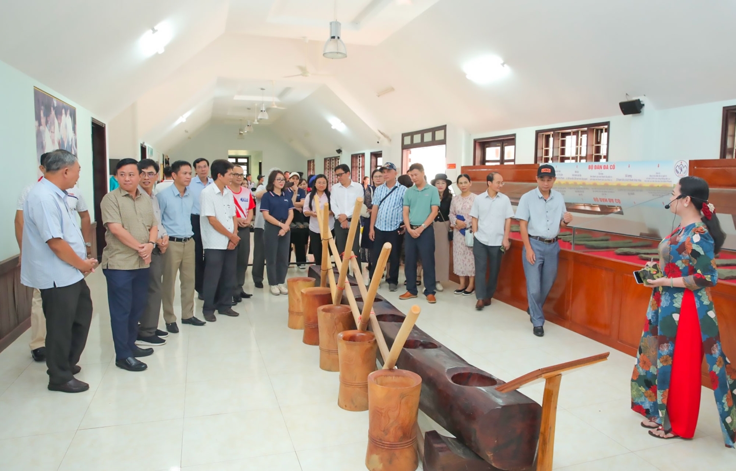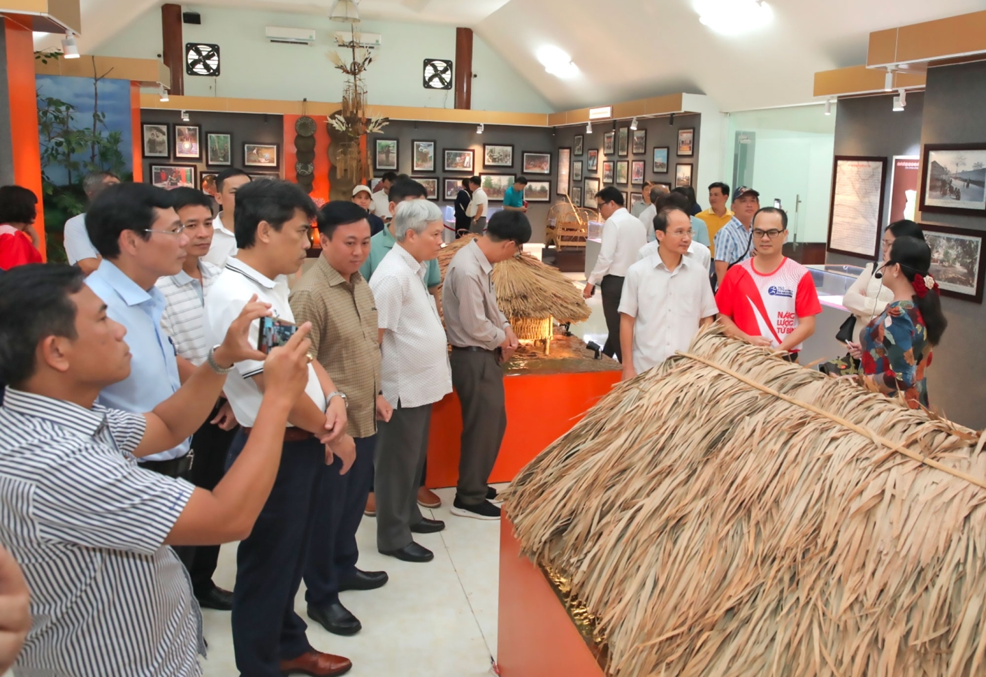 Đoàn tham quan không gian trưng bày văn hóa của đồng bào S’tiêng trên địa bàn tỉnh Bình Phước qua các thời kỳ tại Khu bảo tồn văn hóa dân tộc S’tiêng sóc Bom Bo