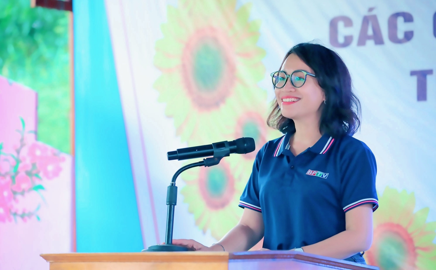 Nhà báo Nguyễn Thị Minh Nhâm, Tỉnh ủy viên, Giám đốc - Tổng Biên tập BPTV phát biểu tại buổi giao lưu các cơ quan báo Đảng miền Đông Nam Bộ