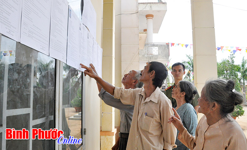 Cử tri xã Phước Minh xem các thông tin ứng cử viên đại biểu Quốc hội để lựa chọn người đại diện cho mình trong ngày 22-5 sắp tới