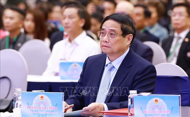 Thủ tướng Phạm Minh Chính dự Hội nghị người Việt Nam ở nước ngoài trên toàn thế giới lần thứ IV. Ảnh: Dương Giang/TTXVN