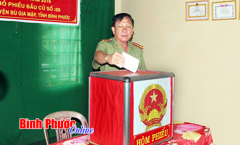 Đại tá Trần Thắng Phúc bỏ lá phiếu đầu tiên tại tổ bầu cử số 9