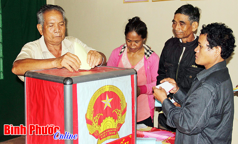 Ông Nguyễn Văn Huy, Tổ trưởng tổ bầu cử số 9 cho biết: Tổ có 896 cử tri, trong đó 85% là đồng bào dân tộc thiểu số. Do công tác tuyên truyền được thực hiện tốt, đồng bộ nên cử tri đều có mặt rất sớm để thực hiện quyền công dân. Điển hình như già làng Điểu Wem và người có uy tín Điểu K Rá có mặt từ rất sớm để đọc kỹ thông tin, danh sách ứng viên được niêm yết để bầu chọn với mong muốn đại biểu trúng cử sẽ có nhiều đóng góp, chăm lo nâng cao đời sống người dân, nhất là đồng bào S’tiêng.