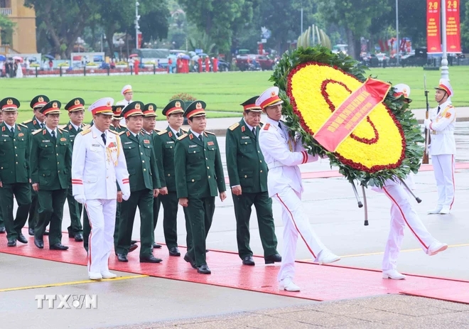 Đoàn đại biểu Quân ủy Trung ương - Bộ Quốc phòng thành kính tưởng nhớ Chủ tịch Hồ Chí Minh. (Ảnh: An Đăng/ TTXVN)