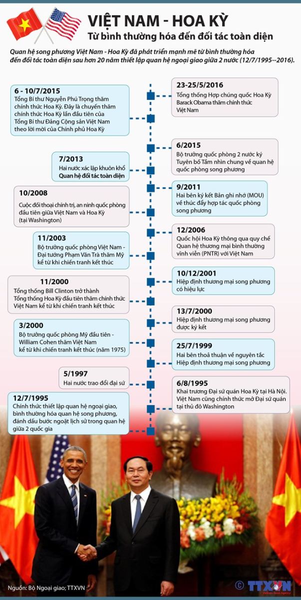 Quan hệ song phương Việt Nam-Hoa Kỳ đã phát triển mạnh mẽ từ bình thường hóa đến đối tác toàn diện sau hơn 20 năm thiết lập quan hệ ngoại giao giữa hai nước.