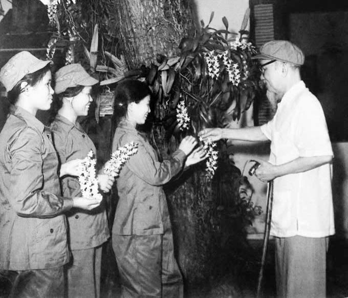 Bác Hồ tặng hoa 3 nữ dân quân Quảng Bình, Vĩnh Linh năm 1968 - Ảnh tư liệu