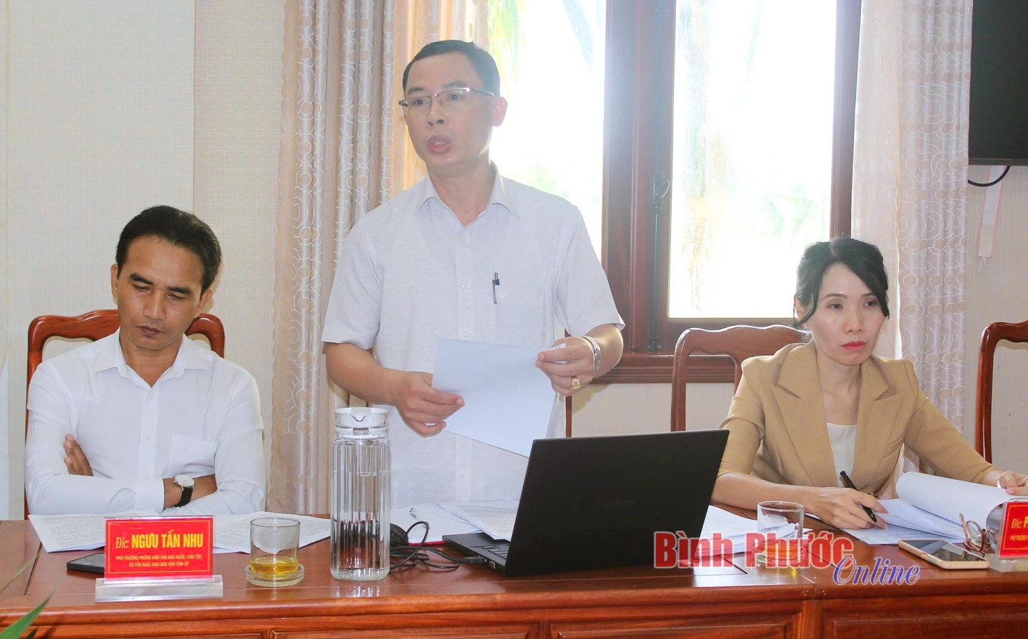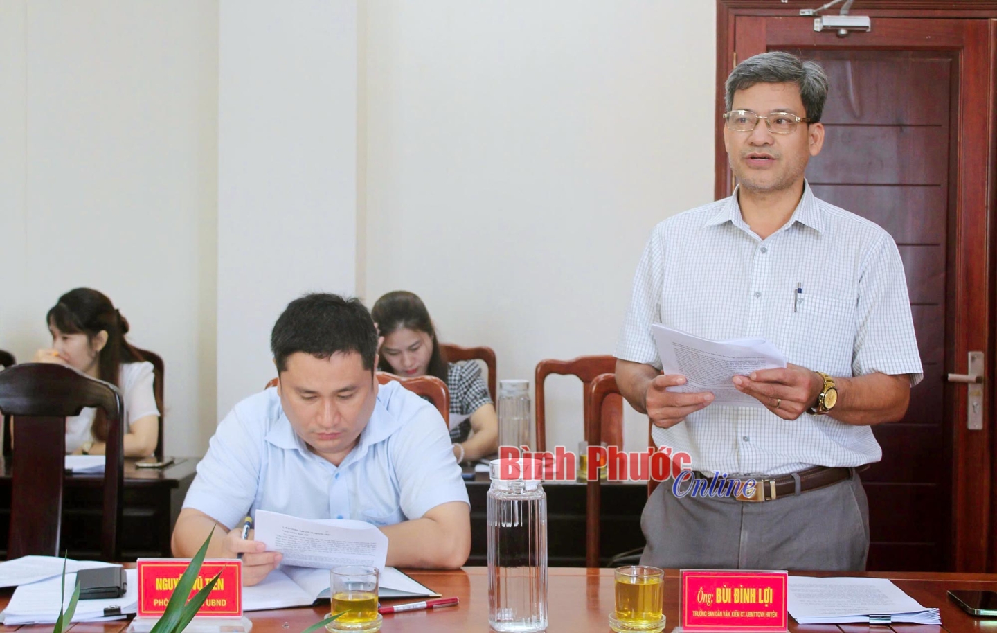 Ông Bùi Đình Lợi, Trưởng Ban Dân vận, Chủ tịch Ủy ban MTTQ Việt Nam huyện thông qua báo cáo tại buổi làm việc