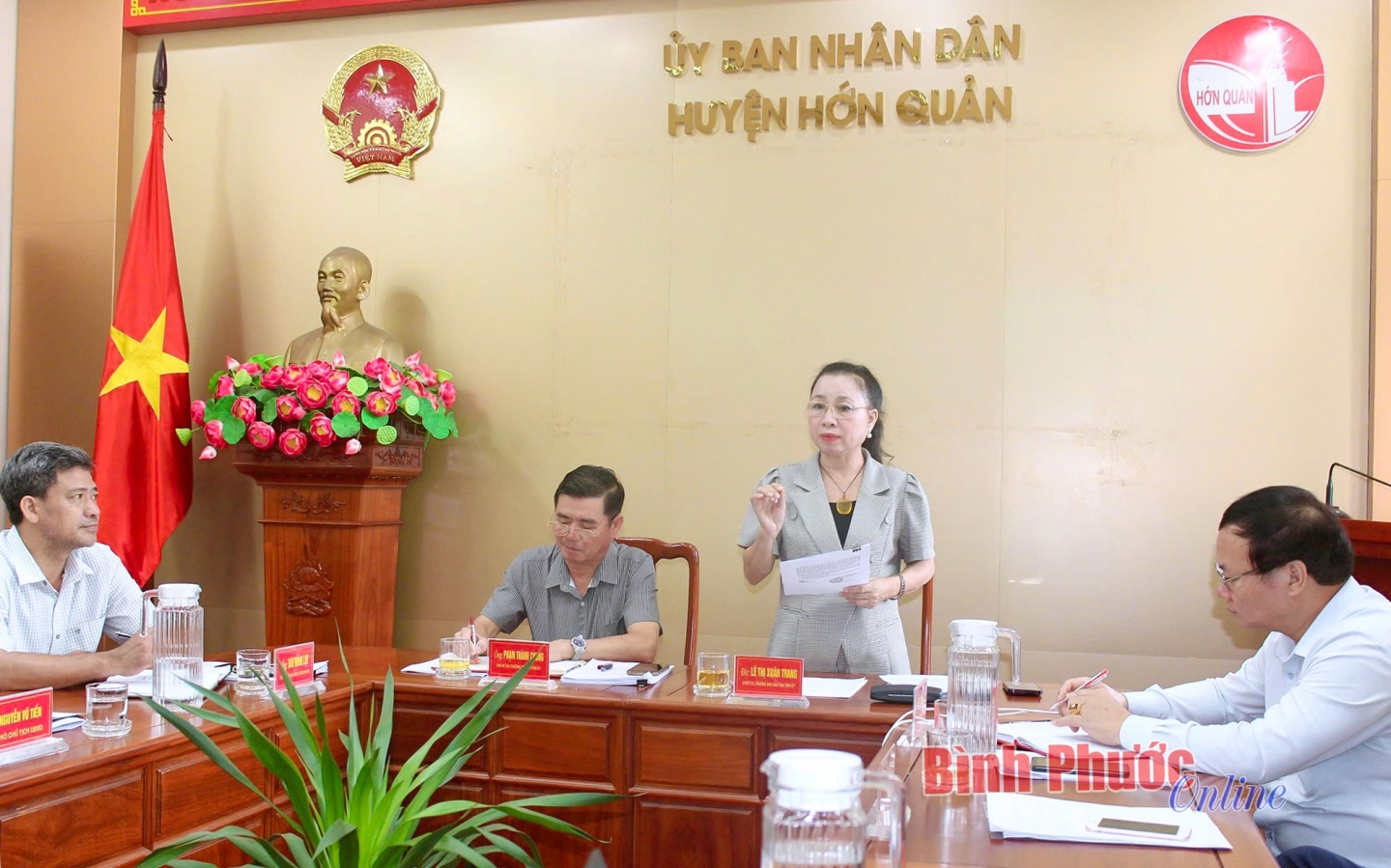 Tại buổi làm việc, sau khi nghe ý kiến của các thành viên đoàn kiểm tra và giải trình, làm rõ một số nội dung báo cáo của các thành viên dự họp, Trưởng Ban Dân vận Tỉnh ủy Lê Thị Xuân Trang đề nghị huyện lưu ý những vấn đề như: Làm tốt công tác tham mưu những vấn đề mới, chú trọng thực hiện công tác dân vận trong thực hiện dự án, trong phát triển kinh tế - xã hội. Công tác dân vận chính quyền phải làm tốt việc nắm tình hình nhân dân, cụ thể hóa phương châm “tỉnh nắm tới xã”, “huyện nắm tới khu phố, thôn, ấp”, “xã nắm tới hộ gia đình”. Mọi công tác của chính quyền phải gắn với công tác vận động quần chúng, góp phần yên dân. Đối với vấn đề giải quyết khiếu kiện, huyện cần quan tâm chỉ đạo, nghiên cứu hồ sơ, nắm chắc nguyên nhân, hạn chế điểm nóng, luôn rà soát có hướng tham mưu xử lý. Đẩy mạnh phong trào thi đua dân vận khéo trong chính quyền.