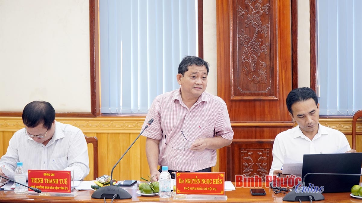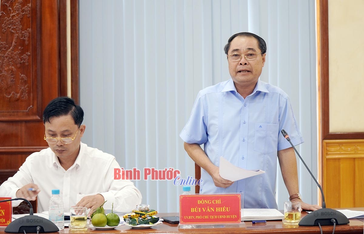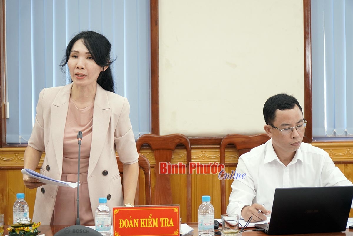 Thành viên đoàn kiểm tra và lãnh đạo huyện Phú Riềng phát biểu tại buổi làm việc