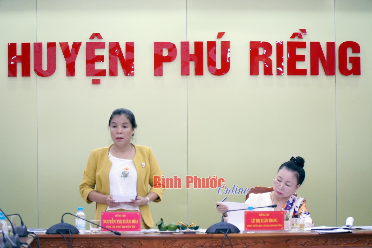 Kết luận buổi kiểm tra, Trưởng Ban Dân vận Tỉnh ủy Lê Thị Xuân Trang đánh giá cao việc thực hiện công tác dân vận, dân vận chính quyền, nhất là sự quan tâm lãnh đạo, chỉ đạo của người đứng đầu cấp ủy, chính quyền huyện Phú Riềng. Đồng thời đề nghị huyện cần tiếp tục phát huy hiệu quả phương châm “Dân biết, dân bàn, dân làm, dân kiểm tra, dân giám sát, dân thụ hưởng”, tạo lòng tin, yêu, ủng hộ và phát huy nội lực của nhân dân trong phát triển kinh tế - xã hội, xây dựng nông thôn mới. Tiếp tục đẩy mạnh cải cách hành chính, xây dựng chính quyền thân thiện; duy trì và thực hiện tốt công tác tiếp công dân, giải quyết đơn thư, khiếu nại của nhân dân. Kiên quyết xử lý nghiêm cán bộ có dấu hiệu gây phiền hà, nhũng nhiễu cho nhân dân…