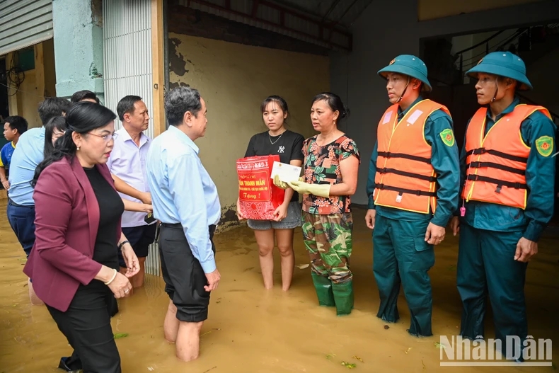 Chủ tịch Quốc hội Trần Thanh Mẫn thăm hỏi, động viên, tặng quà cho người dân bị ngập lụt tại thôn Điếm, xã Nga My, huyện Phú Bình |