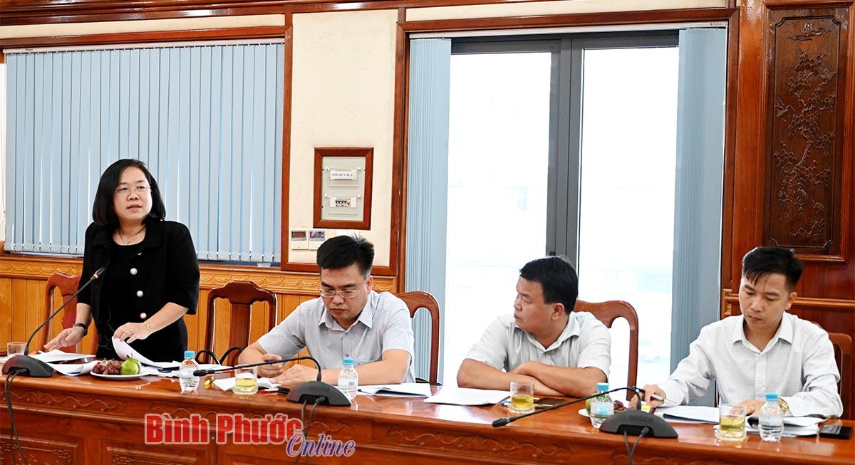 Tỉnh ủy viên, Bí thư Huyện ủy Phú Riềng Nguyễn Thị Xuân Hòa phát biểu tại buổi làm việc