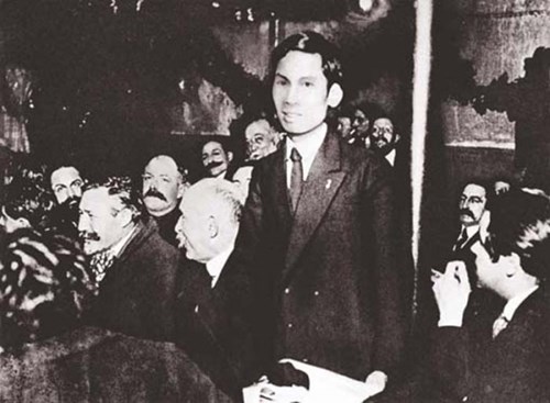 Nguyễn Ái Quốc tại Đại hội lần thứ XVIII của Đảng Xã hội Pháp ở Tua, tháng 12-1920. Ảnh tư liệu
