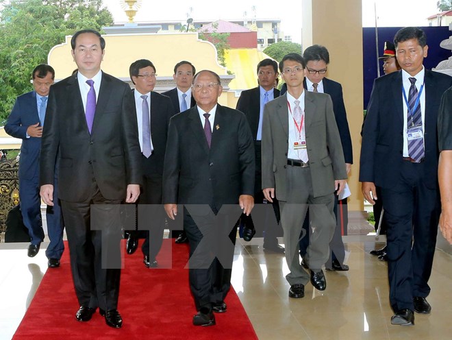 Chủ tịch nước Trần Đại Quang và hai nhà lãnh đạo Thượng viện và Quốc hội Campuchia bày tỏ vui mừng về sự phát triển tốt đẹp của mối quan hệ hữu nghị và hợp tác toàn diện giữa hai nước, trong đó có hợp tác giữa các cơ quan lập pháp.