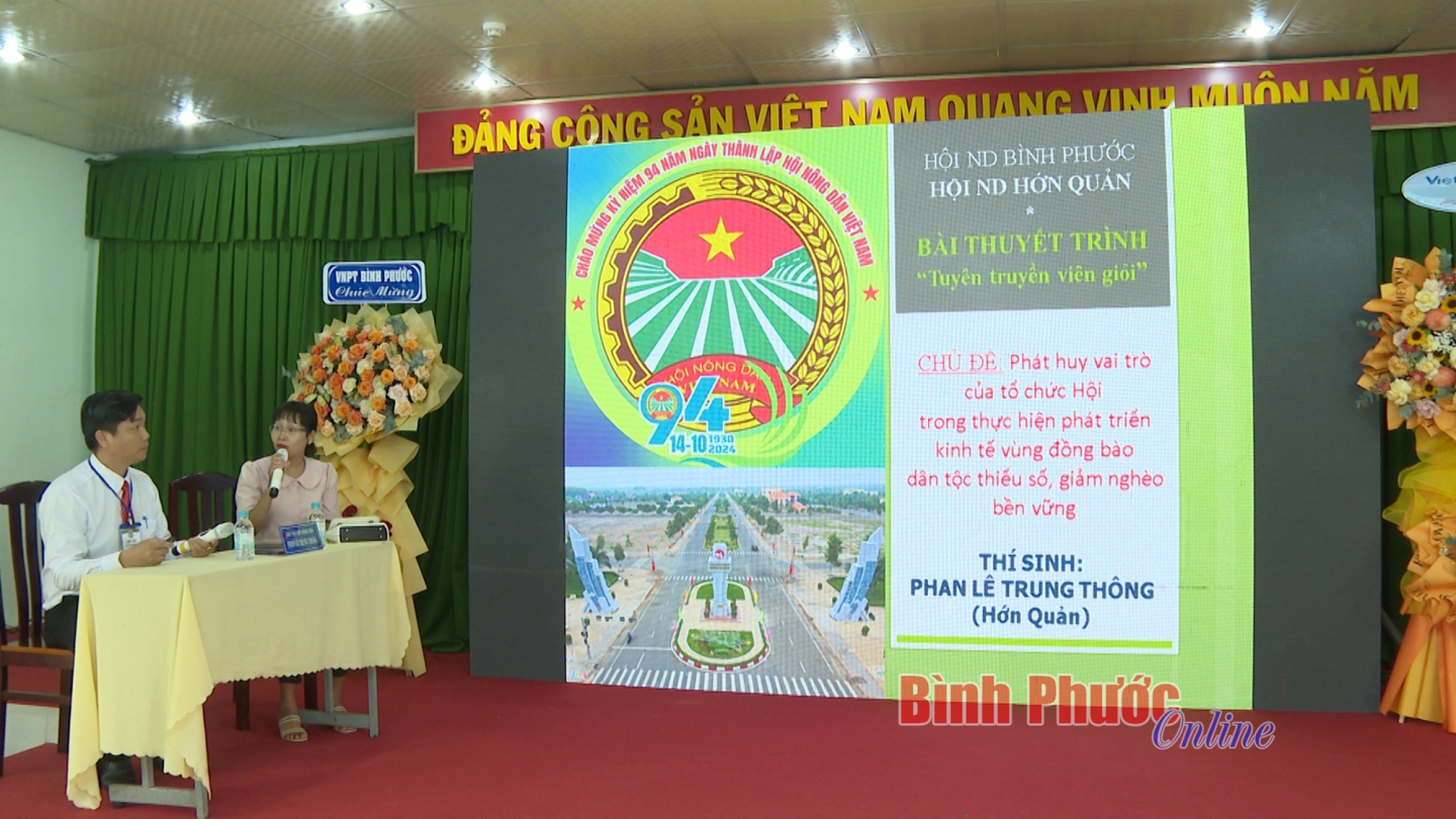 Kết thúc hội thi, Ban tổ chức đã trao giải nhất cho Hội Nông dân huyện Phú Riềng; giải nhì thuộc về Hội Nông dân huyện Hớn Quản, thành phố Đồng Xoài; các đơn vị huyện Bù Đăng, thị xã Chơn Thành, thị xã Bình Long đồng giải ba.