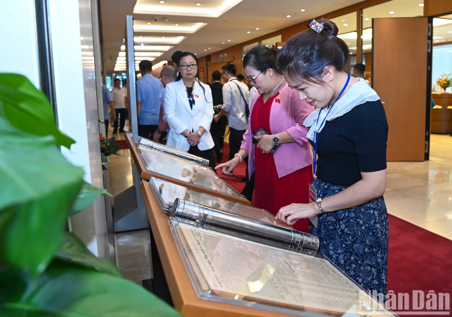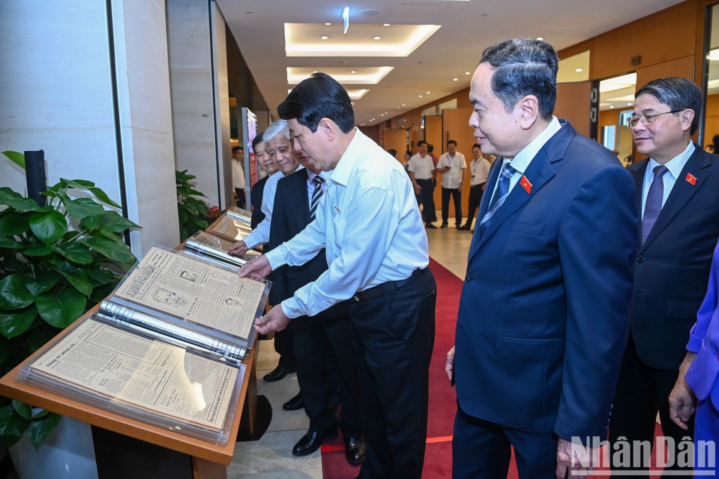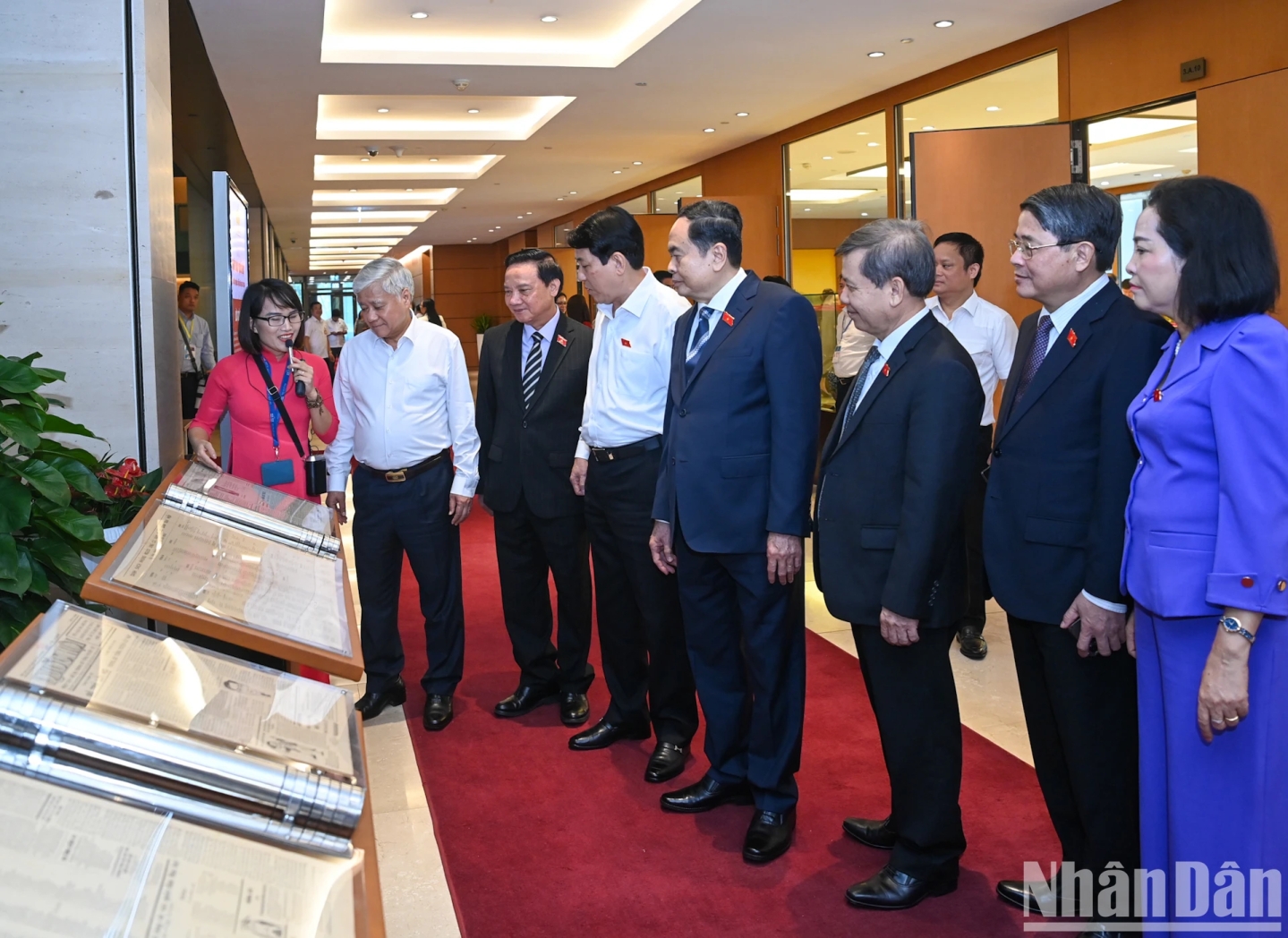 Các đại biểu tham quan trưng bày Bộ sưu tập gốc 15 số của nhật báo Quốc hội |