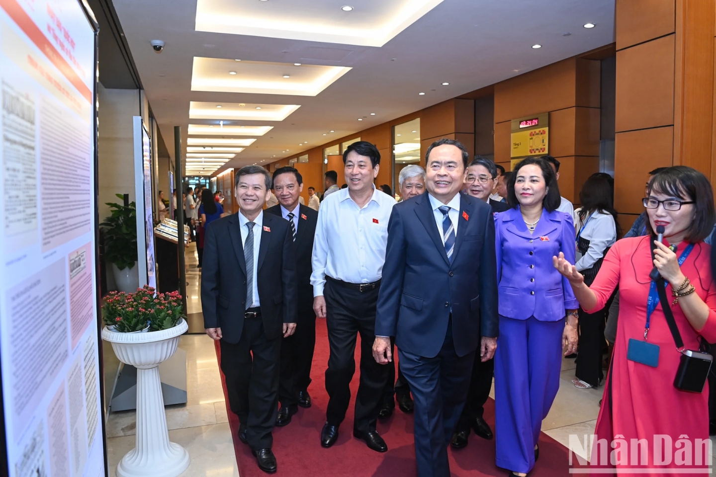 Chủ tịch nước Lương Cường, Chủ tịch Quốc hội Trần Thanh Mẫn cùng các đồng chí lãnh đạo Đảng, Nhà nước tham quan triển lãm |