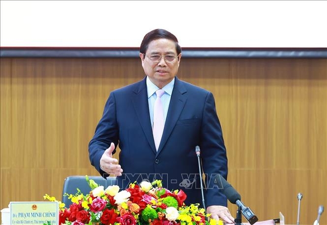 Thủ tướng Phạm Minh Chính phát biểu giao nhiệm vụ cho đồng chí Nguyễn Thanh Lâm, Tổng Giám đốc Đài Truyền hình Việt Nam. Ảnh: Dương Giang/TTXVN