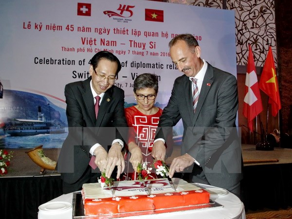 Nghi thức cắt bánh mừng Kỷ niệm 45 năm ngày thiết lập quan hệ ngoại giao Việt Nam-Thụy SĩPhát biểu tại buổi lễ, ông Othmar Hardegger, Tổng Lãnh sự Thụy Sĩ tại Thành phố Hồ Chí Minh nhấn mạnh trong những năm qua mối quan hệ song phương Thụy Sĩ-Việt Nam phát triển mạnh mẽ và hợp tác hiệu quả trên nhiều lĩnh vực. Tuy nhiên, những kết quả đạt được vẫn chưa tương xứng với tiềm năng của hai nước.