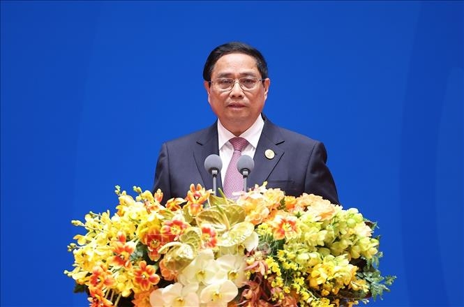 Thủ tướng Phạm Minh Chính phát biểu tại Hội nghị GMS mở rộng lần thứ 8. Ảnh: Dương Giang/TTXVN