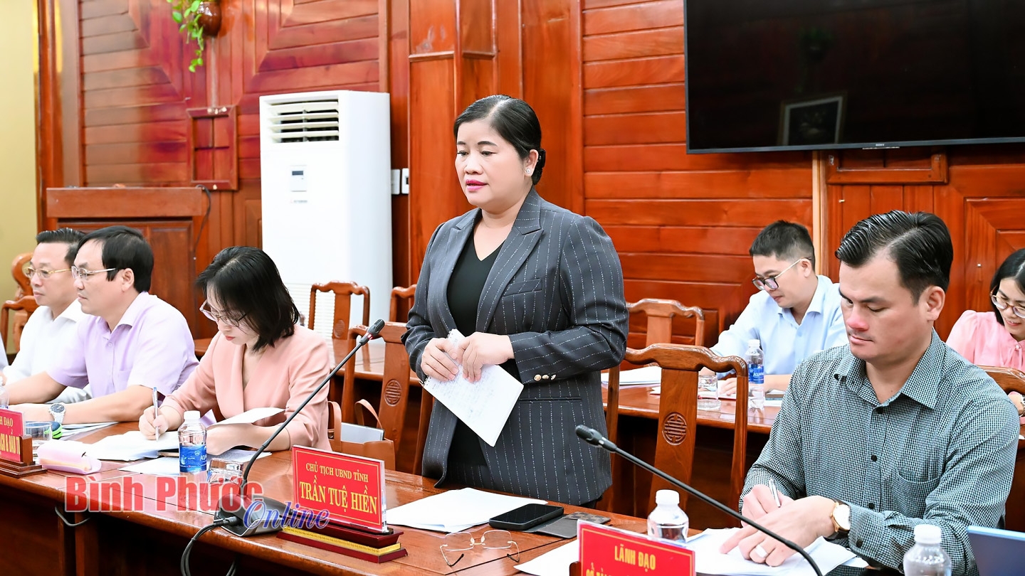 Phát biểu tại buổi làm việc, Chủ tịch UBND tỉnh Trần Tuệ Hiền cũng trao đổi, làm rõ hơn những khó khăn, vướng mắc của Bình Phước. Chủ tịch UBND tỉnh yêu cầu các đơn vị, địa phương rà soát công việc, tiếp thu những gợi ý của đoàn để tập trung chỉ đạo thực hiện. Đồng thời yêu cầu các cơ quan, đơn vị, địa phương cung cấp đầy đủ hồ sơ cho đoàn; sắp xếp công việc, ưu tiên cho chương trình làm việc của đoàn kiểm tra, để đoàn hoàn thành nhiệm vụ.