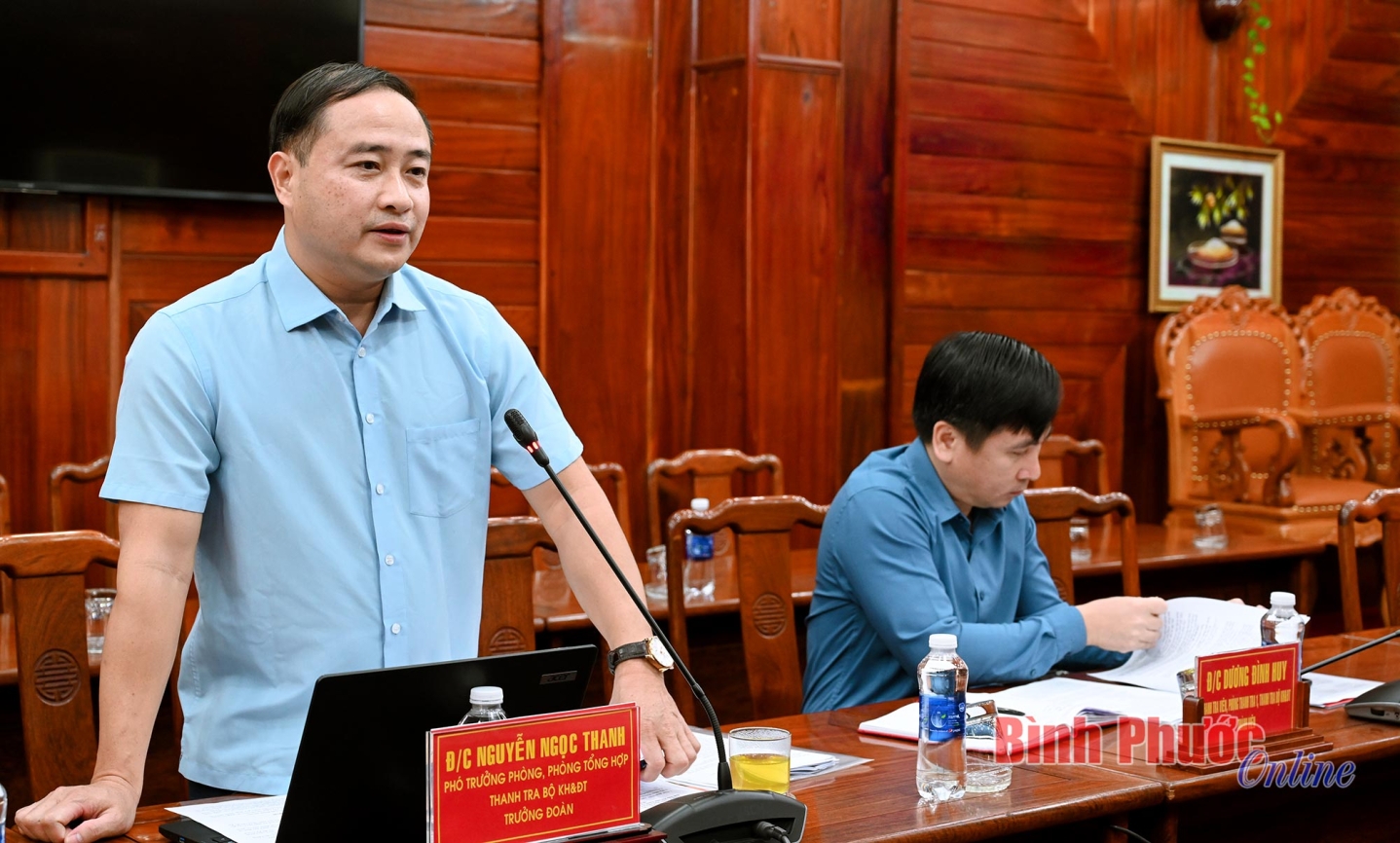 Ghi nhận tinh thần nghiêm túc và chỉ đạo sát sao của UBND tỉnh Bình Phước, ông Nguyễn Ngọc Thanh, Phó Trưởng Phòng Tổng hợp - Thanh tra, Bộ Kế hoạch và Đầu tư đề nghị các đơn vị cung cấp hồ sơ tài liệu cho đoàn. Đối với những khó khăn, vướng mắc, hai bên sẽ trao đổi để tháo gỡ, đảm bảo đúng quy định pháp luật...