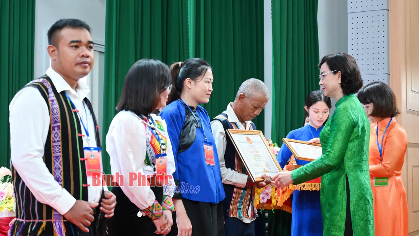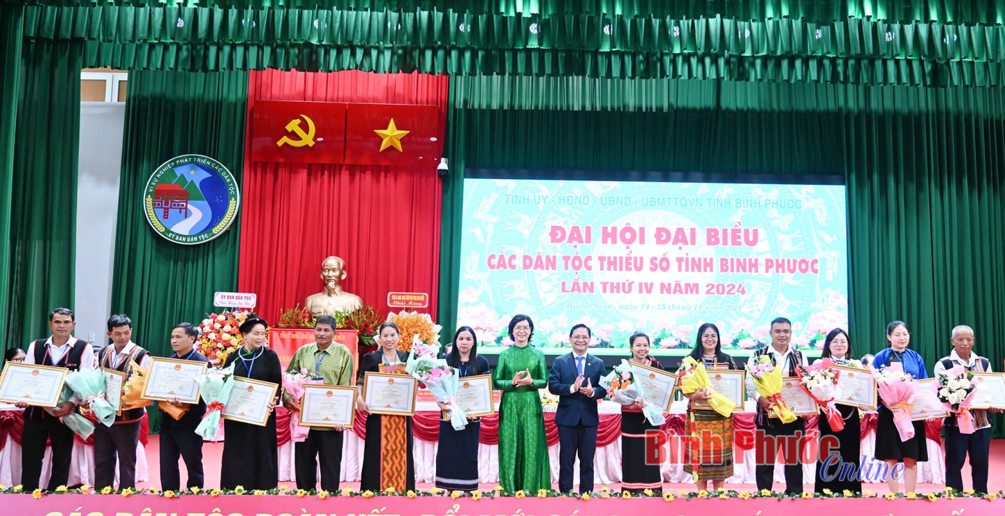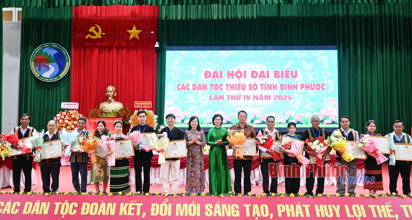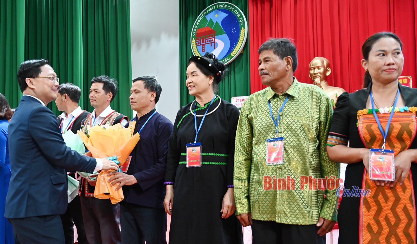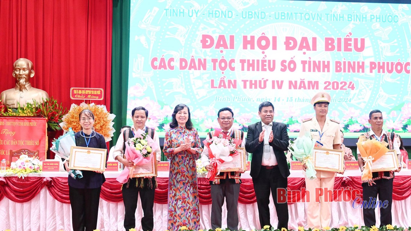 Thứ trưởng, Phó Chủ nhiệm Ủy ban Dân tộc Y Thông đánh giá cao công tác dân tộc của tỉnh Bình PhướcTại đại hội, các cá nhân và tập thể đã trình bày, báo cáo các tham luận. Dịp này, đại hội cũng đã tặng Kỷ niệm chương của Ủy ban Dân tộc cho 5 cá nhân, bằng khen cho 5 cá nhân và 1 tập thể; tặng bằng khen của UBND tỉnh cho 40 cá nhân có thành tích xuất sắc đóng góp chung vào thành tựu phát triển kinh tế - xã hội, giữ vững quốc phòng - an ninh vùng DTTS toàn tỉnh giai đoạn 2019-2024.
