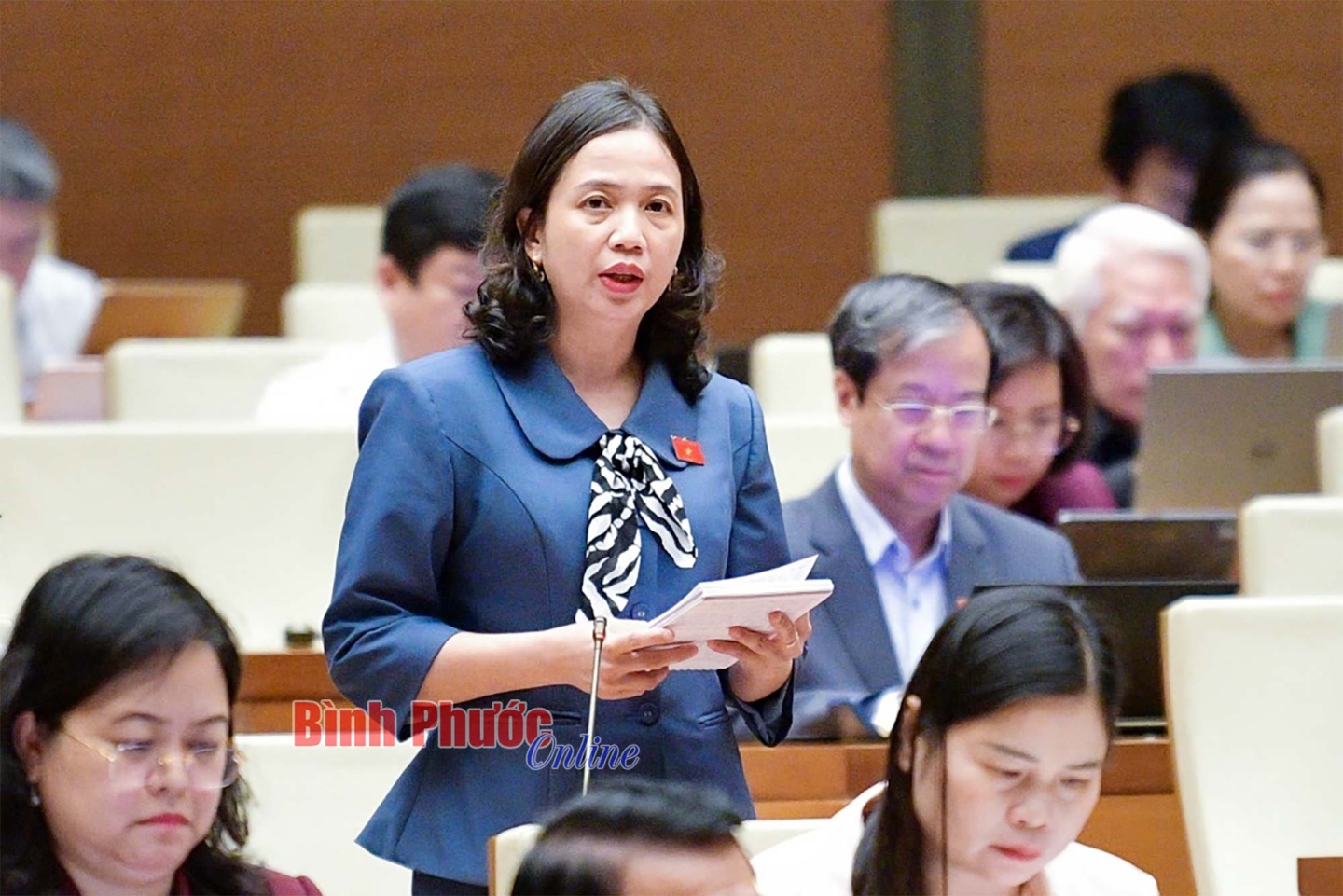Đại biểu Điểu Huỳnh Sang, Trưởng đoàn chuyên trách, phụ trách Đoàn đại biểu Quốc hội tỉnh Bình Phước phát biểu tại phiên họp tổ, kỳ họp thứ 8, Quốc hội khóa XV - Ảnh: M.H