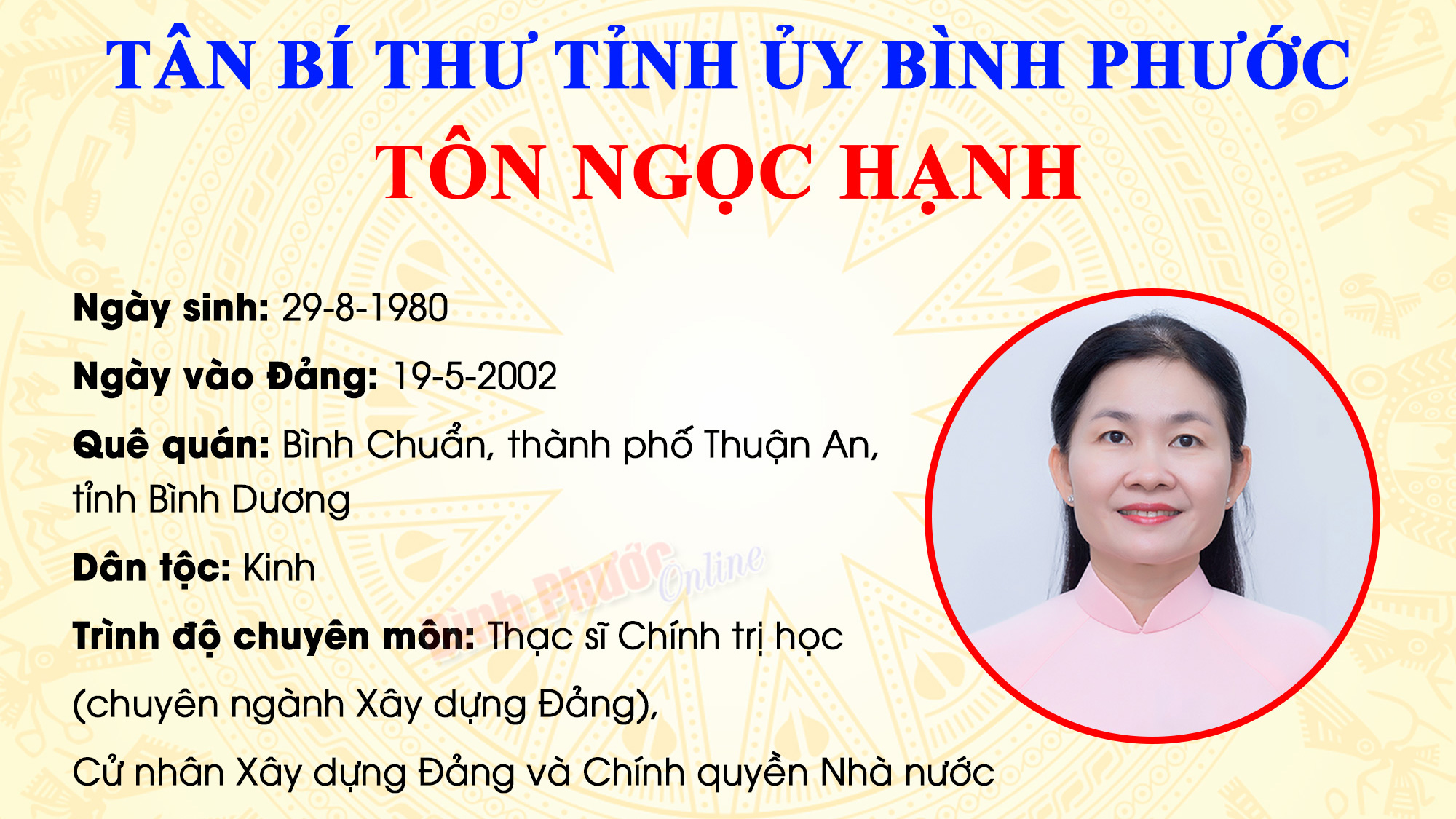 Ủy viên Dự khuyết Ban Chấp hành Trung ương Đảng, Bí thư Tỉnh ủy Bình Phước Tôn Ngọc Hạnh bày tỏ vinh dự và xúc động được Bộ Chính trị phân công đảm nhận trọng trách Bí thư Tỉnh ủy Bình Phước