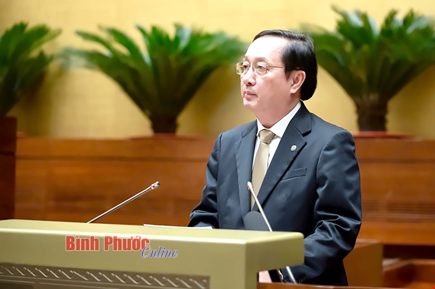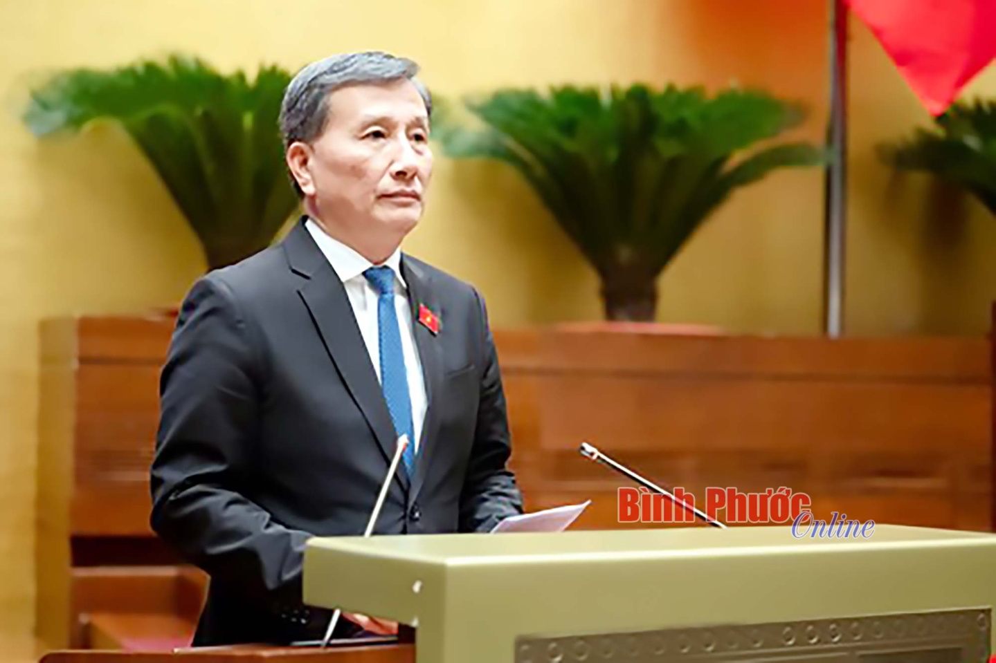 Đại biểu Điểu Huỳnh Sang, Phó Trưởng đoàn chuyên trách, phụ trách Đoàn đại biểu Quốc hội tỉnh Bình Phước phát biểu thảo luận tại tổ