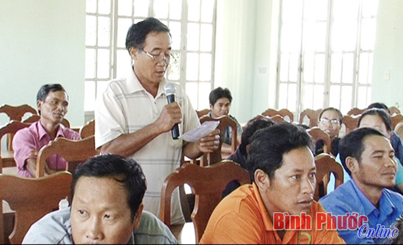 * Tại huyện Đồng Phú: Cử tri thị trấn Tân Phú đã kiến nghị liên quan đến các vấn đề: Đại biểu cần sát dân, nắm bắt tâm tư, nguyện vọng của người dân. Tăng cường hỗ trợ gia đình chính sách. Một số hộ dân ấp Dên Dên chưa có điện. Cần xử lý xe chở quá tải trọng làm hư hỏng đường giao thông nông thôn. Tình trạng dạy thêm, học thêm còn khá phổ biến. Cần xây dựng bãi rác công cộng, tránh ô nhiễm môi trường...