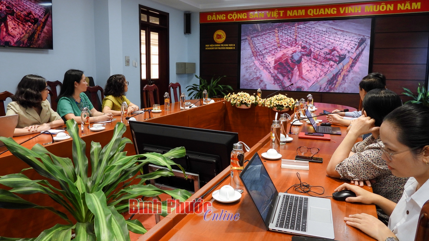 Lãnh đạo Học viện Chính trị khu vực II và các bộ phận chuyên môn làm việc với lãnh đạo Đài Phát thanh - Truyền hình và Báo Bình Phước để rà soát, thống nhất các nội dung phối hợp thực hiện chương trình tọa đàm