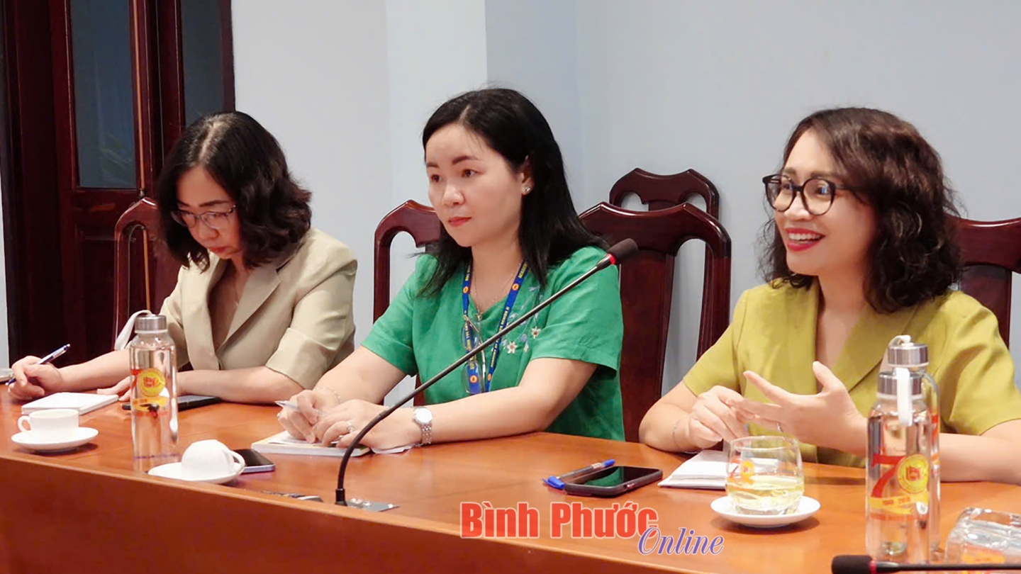 Tỉnh ủy viên, Giám đốc - Tổng Biên tập Đài Phát thanh - Truyền hình và Báo Bình Phước Nguyễn Thị Minh Nhâm phát biểu tại buổi làm việc