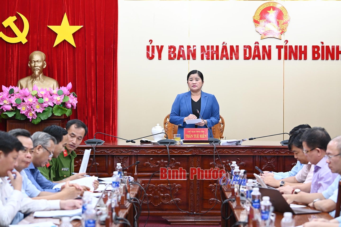 Chủ tịch UBND tỉnh Trần Tuệ Hiền phát biểu kết luận cuộc họp