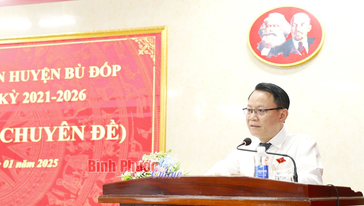 Phát biểu bế mạc kỳ họp, Tỉnh ủy viên, Bí thư Huyện ủy, Chủ tịch HĐND huyện Dương Thanh Huân đề nghị UBND huyện khẩn trương thực hiện nghị quyết của HĐND huyện, tham mưu Ban Thường vụ Huyện ủy về bố trí sắp xếp vị trí cán bộ lãnh đạo Phòng y tế.