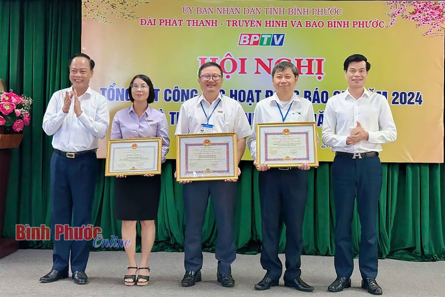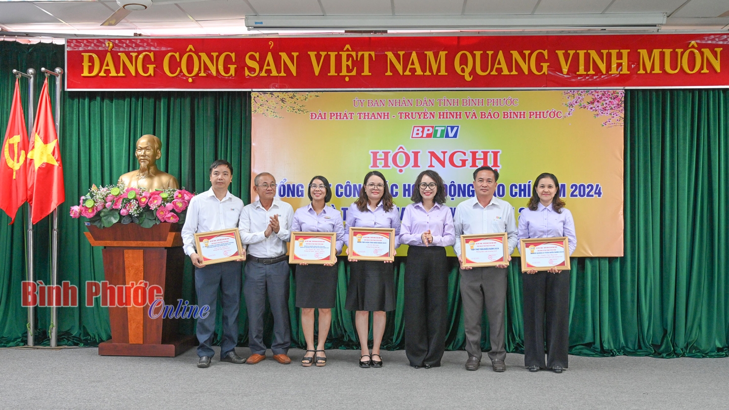 Ghi nhận thành tích đạt được, 2 tập thể và 2 cá nhân có thành tích trong phong trào thi đua hoàn thành xuất sắc nhiệm vụ công tác được giao năm 2024 được nhận bằng khen của Chủ tịch UBND tỉnh; 1 tập thể tiêu biểu và 6 cá nhân tiêu biểu được Ban Giám đốc - Ban Biên tập BPTV tuyên dương.