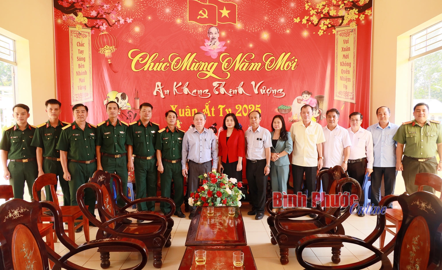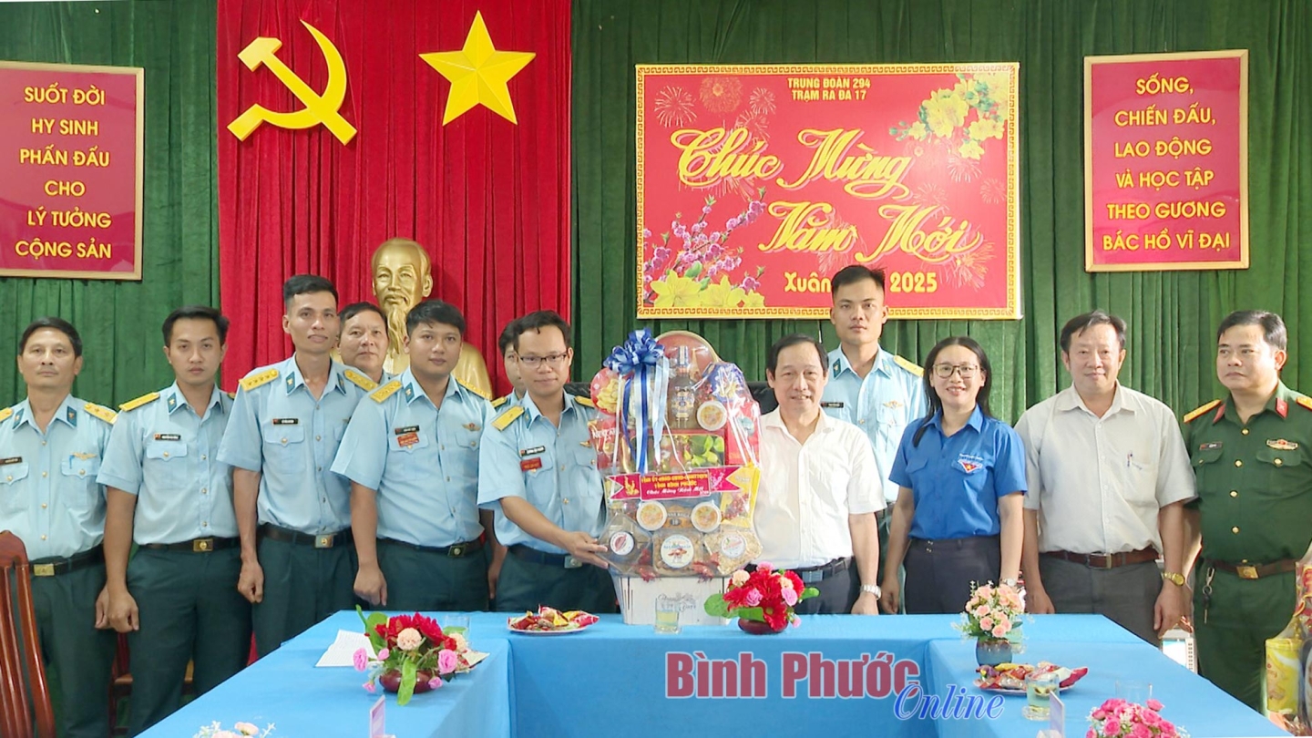 Ủy viên Ban Thường vụ Tỉnh ủy, Bí thư Thị ủy Chơn Thành Lê Hoàng Lâm cùng lãnh đạo thị xã Chơn Thành thăm, chúc tết và tặng quà Trạm ra đa 17