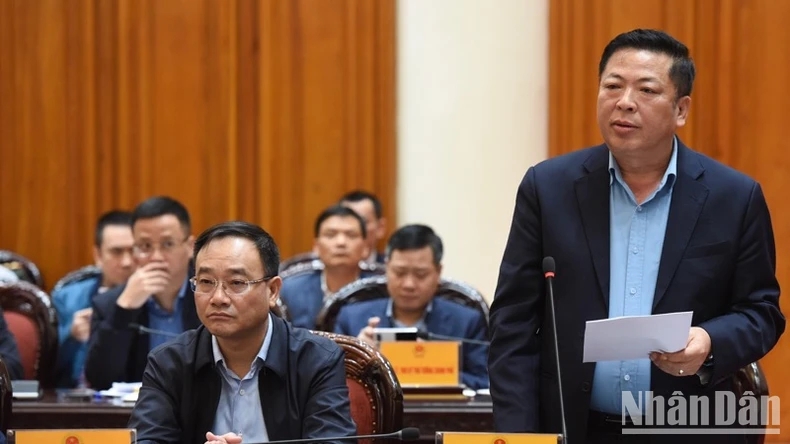 Bộ trưởng Giao thông Vận tải Trần Hồng Minh báo cáo tại cuộc họp. (Ảnh: TRẦN HẢI)