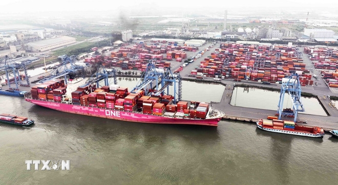 Cảng quốc tế Cái Mép – Thị Vải (Bà Rịa – Vũng Tàu), một trong hai cảng đặc biệt của Việt Nam, là 1 trong 19 cảng trên thế giới có khả năng tiếp nhận tàu siêu trọng và nằm trong nhóm 50 cảng biển có sản lượng khai thác container cao nhất thế giới hiện nay. (Ảnh: Vũ Sinh/TTXVN)