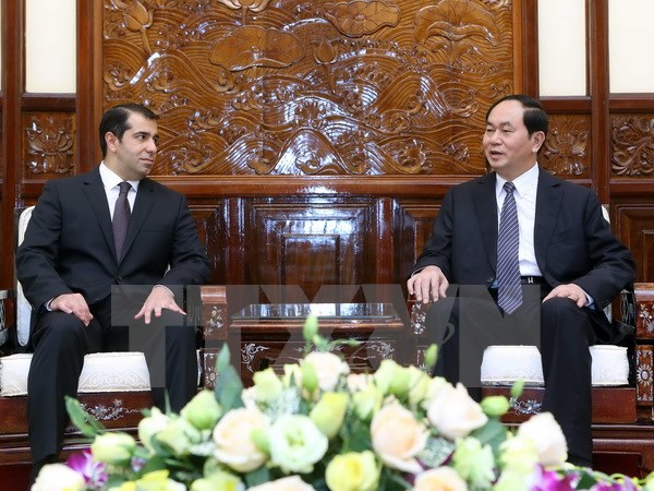 Bày tỏ vui mừng trước sự phát triển tốt đẹp của quan hệ truyền thống Việt Nam-Azerbaijan thời gian qua, Chủ tịch nước Trần Đại Quang hoan nghênh việc hai nước đã thành lập Ủy ban liên Chính phủ về hợp tác kinh tế-thương mại và khoa học-kỹ thuật.