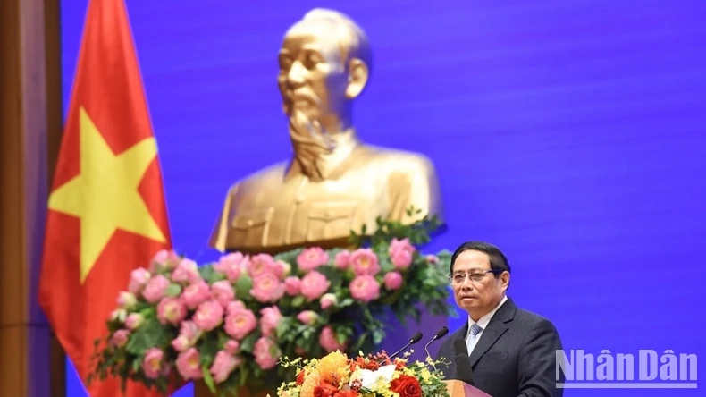 Thủ tướng Chính phủ Phạm Minh Chính phát biểu ý kiến tại buổi lễ. (Ảnh: TRẦN HẢI)
