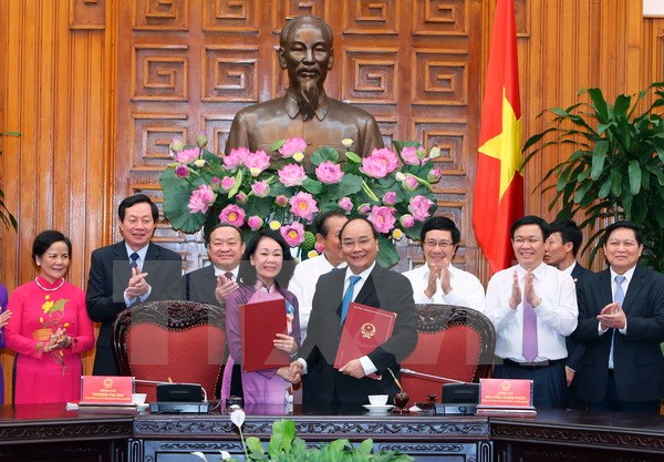 Thủ tưởng Nguyễn Xuân Phúc và Trưởng Ban Dân vận Trung ương Trương Thị Mai ký kết Chương trình phối hợp
