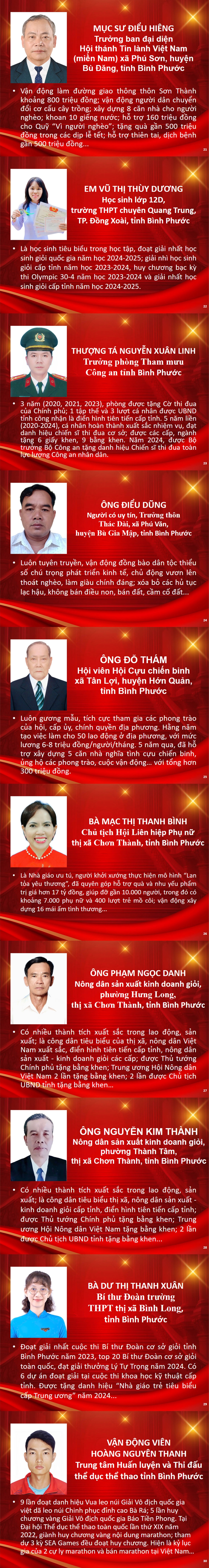 Trên cơ sở 100 cá nhân được đề cử, phân bổ trên tất cả lĩnh vực đời sống xã hội của tỉnh, Hội đồng bình chọn đã triển khai thực hiện quy trình xét chọn, đi đến thống nhất, đồng thời tiến hành phổ biến, tuyên truyền rộng rãi để lấy ý kiến nhân dân. Sau thời gian triển khai thực hiện, ngày 20-3-2025, UBND tỉnh ban hành Quyết định số 612/QĐ-UBND công nhận và vinh danh 50 “Công dân Bình Phước ưu tú”.