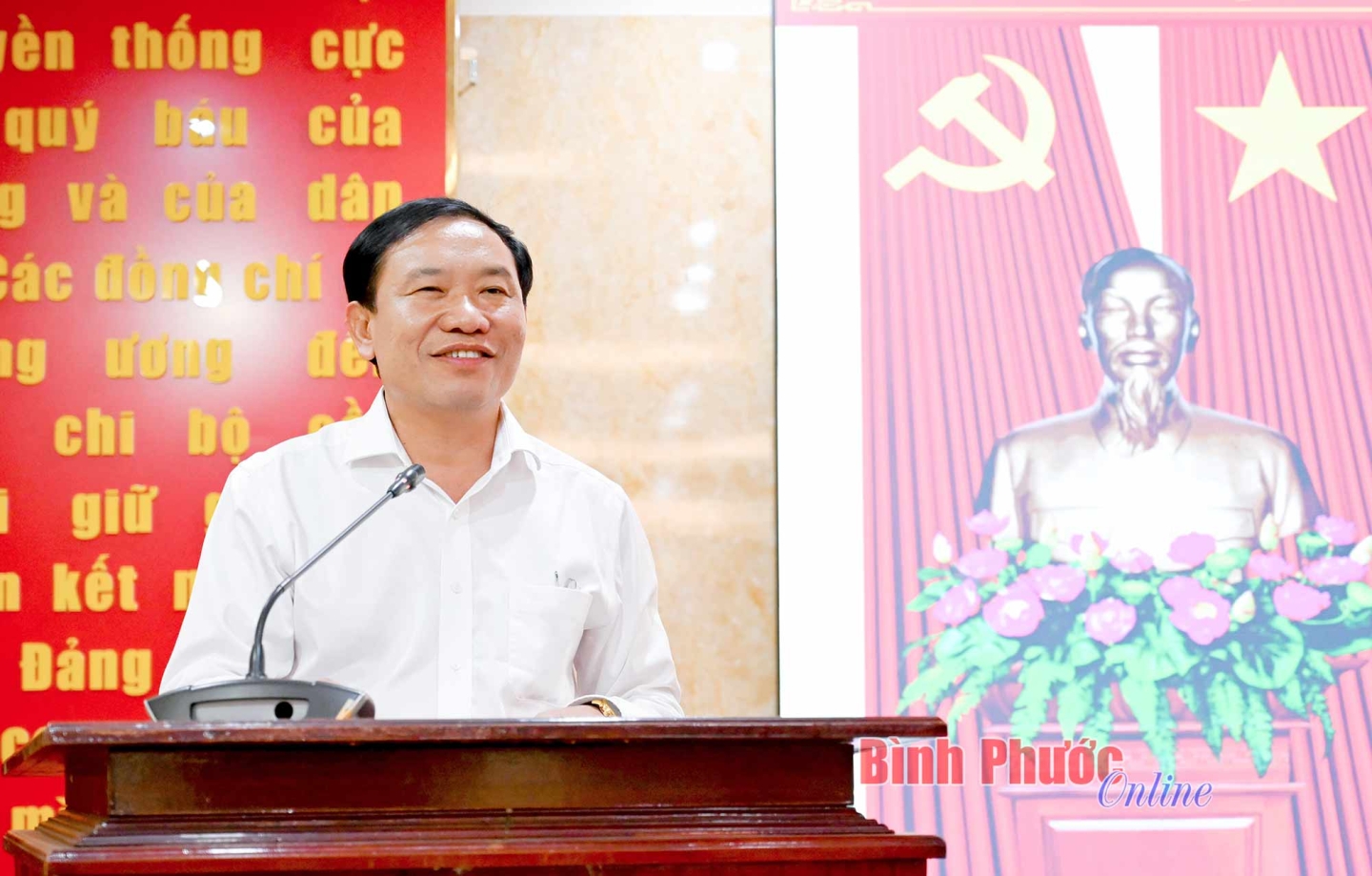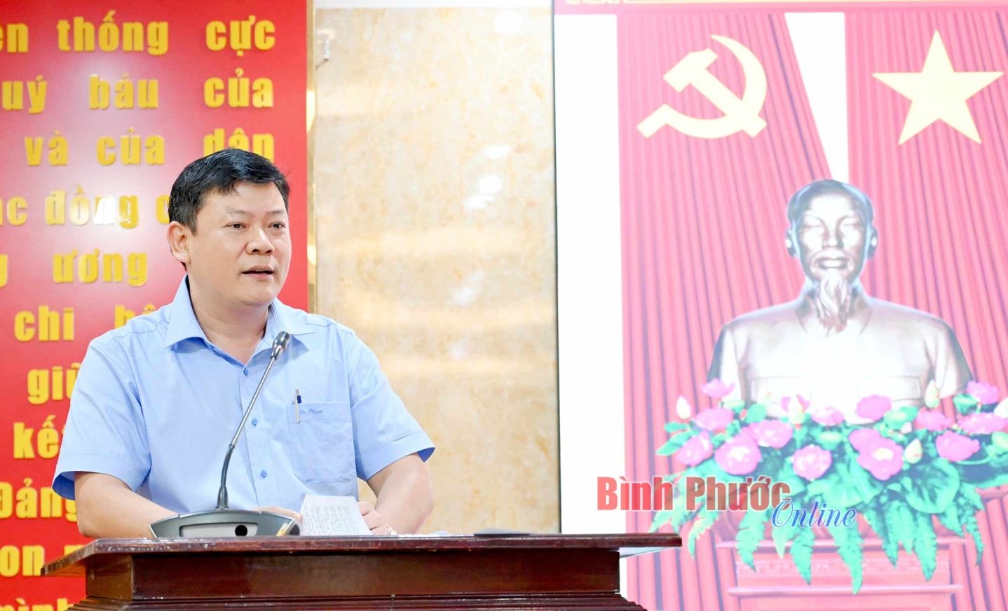 Chánh Văn phòng Tỉnh ủy Vũ Văn Mười phát biểu tại hội nghị