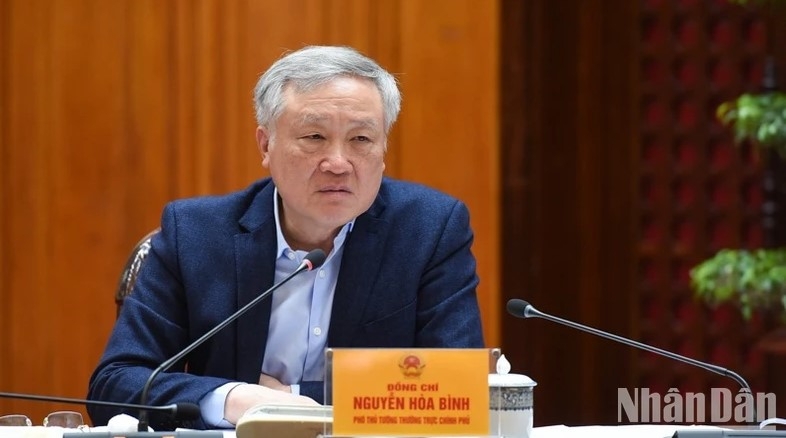 Phó Thủ tướng Thường trực Chính phủ Nguyễn Hòa Bình - Trưởng Ban Chỉ đạo phát biểu ý kiến tại cuộc họp (Ảnh: TRẦN HẢI).