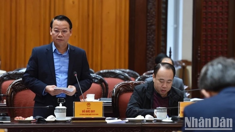 Bộ trưởng Nông nghiệp và Môi trường Đỗ Đức Duy phát biểu ý kiến tại cuộc họp (Ảnh: TRẦN HẢI).