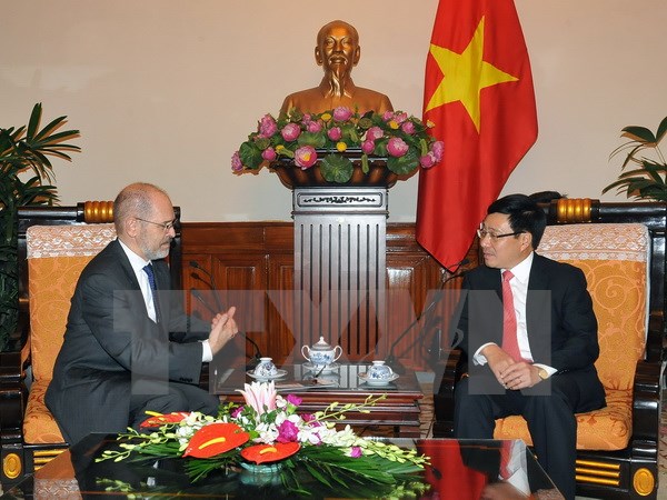 Tại cuộc tiếp, Chủ tịch Hội đồng Doanh nghiệp thúc đẩy quan hệ quốc tế Peter Tichansky cảm ơn Phó Thủ tướng, Bộ trưởng Phạm Bình Minh đã dành thời gian dự Tọa đàm bàn tròn do Hội đồng Doanh nghiệp thúc đẩy quan hệ quốc tế tổ chức vào tháng 9/2016 tại New York và trực tiếp trao đổi, giải đáp các thắc mắc và khuyến khích các doanh nghiệp Hoa Kỳ tiếp tục mở rộng kinh doanh của mình tại Việt Nam.