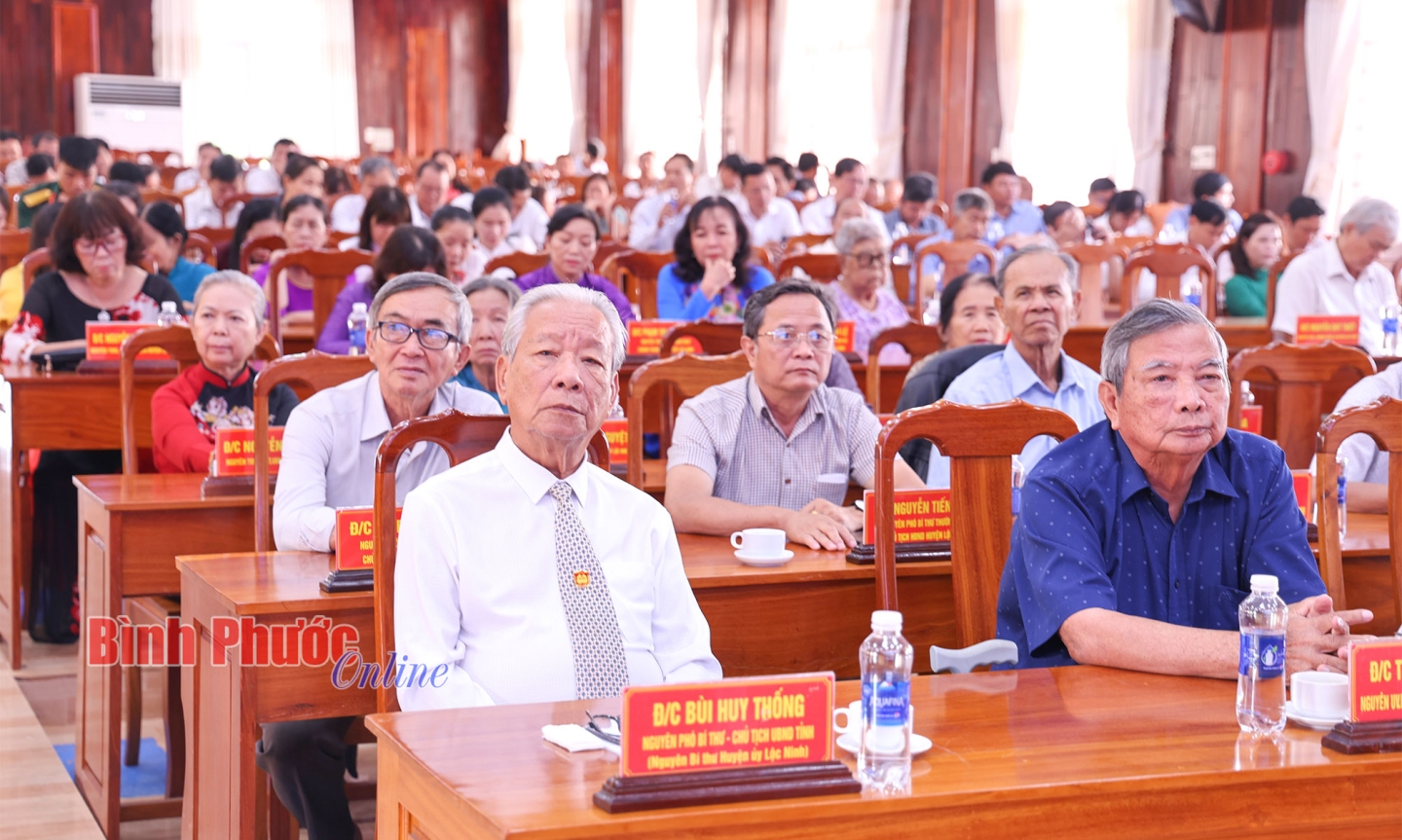 Các đồng chí lãnh đạo, nguyên lãnh đạo huyện, cán bộ, công chức, viên chức huyện Lộc Ninh tại buổi họp mặt