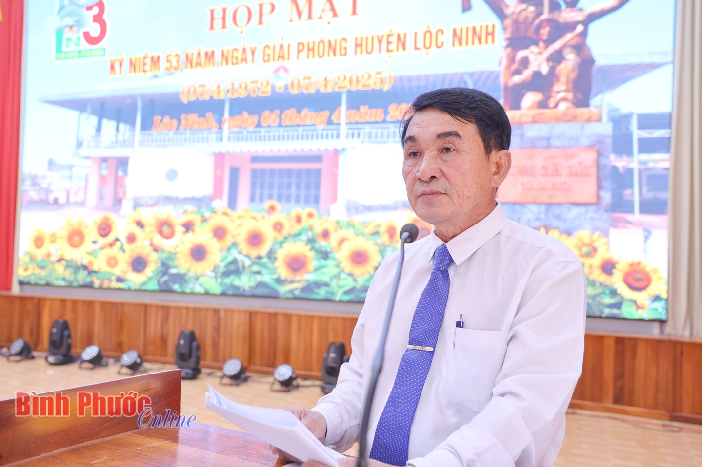 Ôn lại truyền thống, lịch sử thắng lợi vẻ vang của Đảng bộ, chính quyền, quân và dân huyện nhà, Phó Bí thư Thường trực Huyện ủy, Chủ tịch HĐND huyện phụ trách Đảng bộ huyện Trần Thanh Hùng cho biết: Lộc Ninh là mảnh đất có vị trí chiến lược rất quan trọng trong 2 cuộc kháng chiến chống thực dân Pháp và đế quốc Mỹ xâm lược. Vào đầu năm 1970, tình hình chiến trường Lộc Ninh - Bù Đốp có những thay đổi đột biến. Trong lúc địch ráo riết xây dựng hệ thống phòng thủ ở Lộc Ninh, cũng là lúc Bộ Chỉ huy quân giải phóng miền Nam Việt Nam quyết định mở chiến dịch Nguyễn Huệ và chọn Lộc Ninh, Hớn Quản, Chơn Thành là hướng chủ yếu cho chiến dịch. Ngày 5-4-1972, Bộ Chỉ huy chiến dịch phát lệnh nổ súng tấn công đánh địch, quyết tâm giải phóng Lộc Ninh. Trước sức tiến công như vũ bão của quân ta, đúng 17 giờ ngày 7-4-1972, Lộc Ninh hoàn toàn giải phóng.