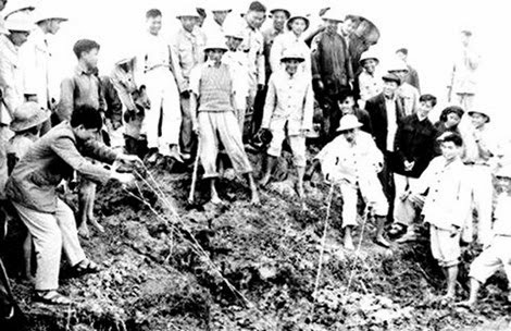 Bác hồ tát nước với nông dân - Ảnh tư liệu |